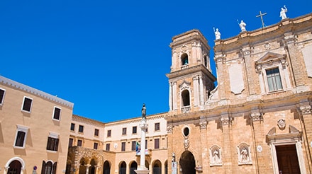 ![]() Бриндизи – небольшой портовый городок южной Италии и сравнительно молодой курорт. Бриндизи славится своей живописной природой и умиротворяющей атмосферой. История городка прослеживается в ее достопримечательностях. В порту гостей встречают мраморные римские колонны, которые по легенде возводил сам Геркулес. На соборной площади расположен величественный Кафедральный собор, заложенный еще в 12 веке. Заслуживают внимания церковь Богоматери, в облике которой сплетаются романские и готические традиции, и впечатляющий архитектурный комплекс церкви Святого Бенедикта. Доставит удовольствие посещение местных ресторанов, блюда которых воплощают традиции классической итальянской кухни с неповторимым местным колоритом. Предмет особой гордости – вино. В Бриндизи расположено множество виноделен, которые охотно принимают гостей, открывая им секреты производства и угощая лучшими сортами напитка.