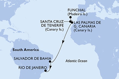 Фуншал, о. Мадейра Рио-де-Жанейро (5 городов/портов в 3 странах)